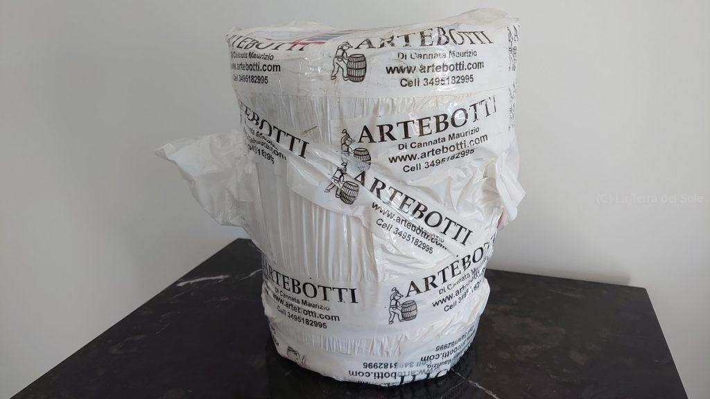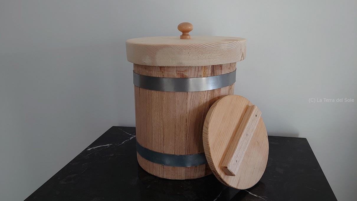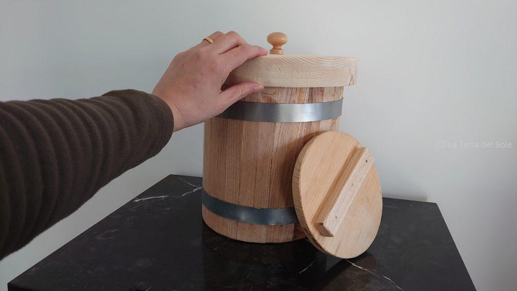 味噌用の樽がイタリアの樽職人(?)にとって「普通じゃない」ところは、内蓋&外蓋の構造。そうなのです。外側にも蓋が欲しいのよ~!ってあたりを交渉して、従来品を少し改造した品を特別に作ってもらえるようにしたらしい。