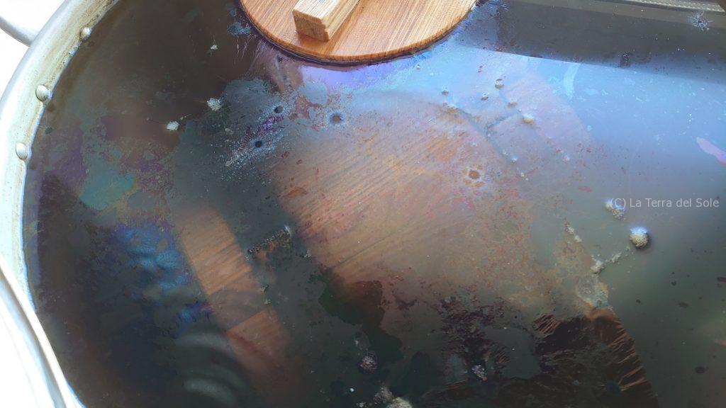 マルケから来た麹、エミリアロマーニャからの縁で来たシチリア産の樽。カラブリア州産大豆。アルティメットな手前味噌が熟成中でございます。