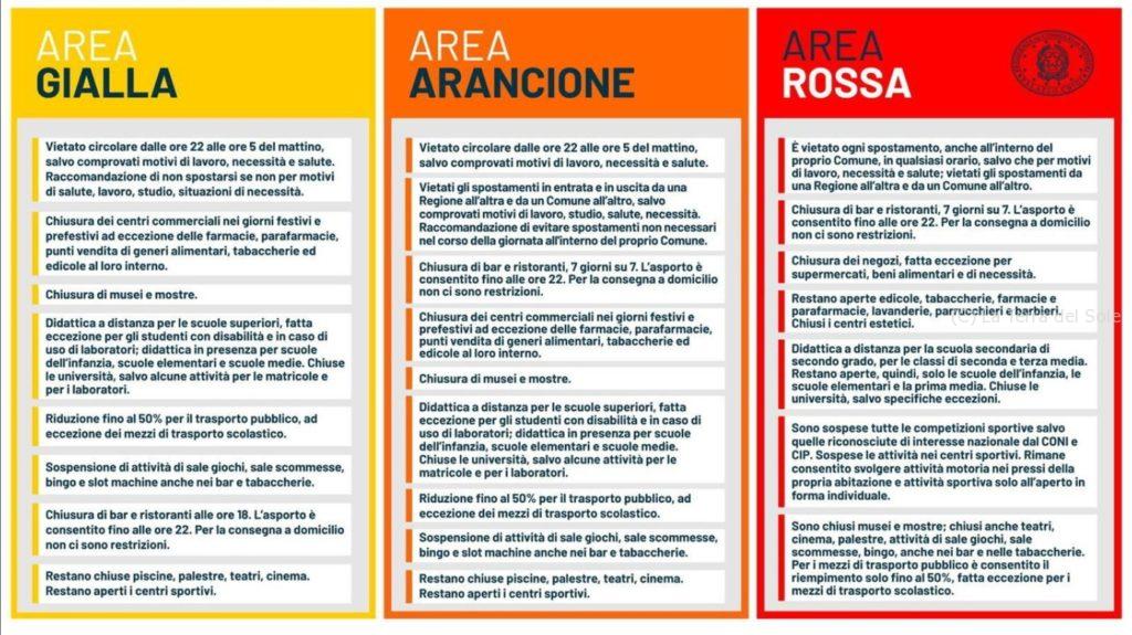 州知事の「良い子にしていないと火炎放射器で攻撃するぞ」発言で有名になったカンパーニア州は、最も規制が緩やかな黄色です。