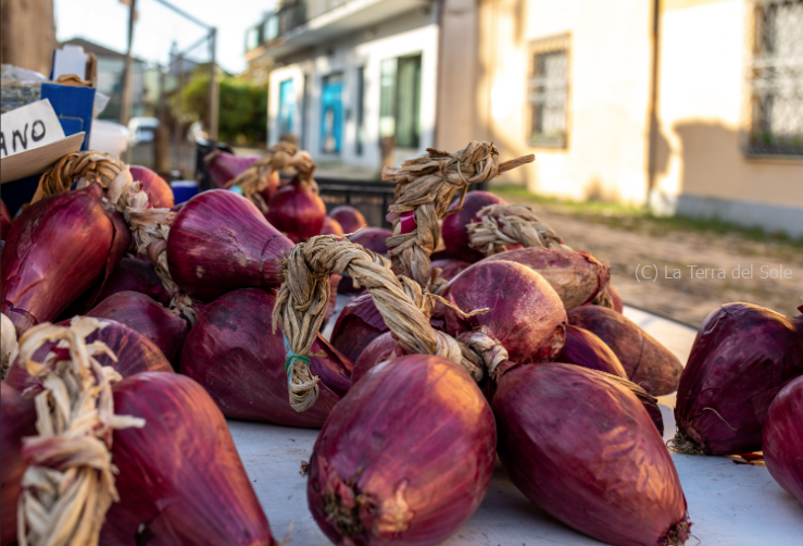 かつて近隣一帯で生産されていた赤玉ねぎの集積地であったことからついた呼び名で、少し北のラメッツィアテルメ空港近郊から南が生産地域。DOP印のついた食材で、カラブリア州を代表する農産物の一つです。